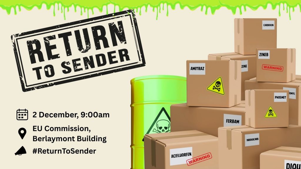On 2 December, ahead of the International No Pesticide Use Day, we will gather in Brussels to deliver 75 boxes – one for each banned pesticide Europe continues to export -to the European Commission.